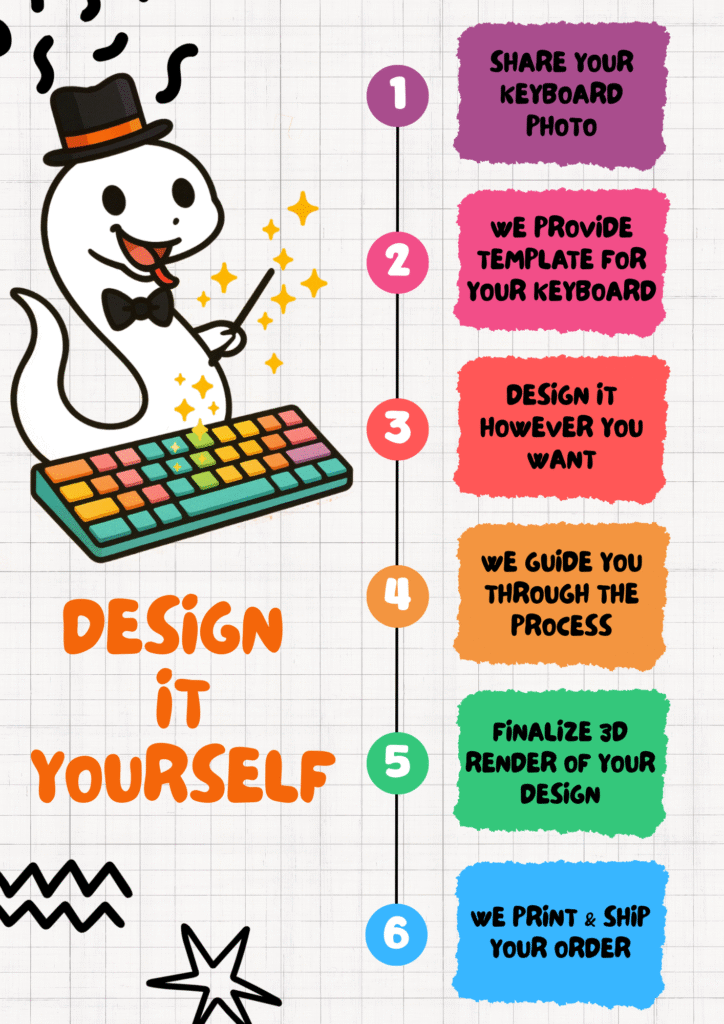 Upload Your Vision: Use our kit designer to pick colors for every individual key or upload custom vector art for your novelties.