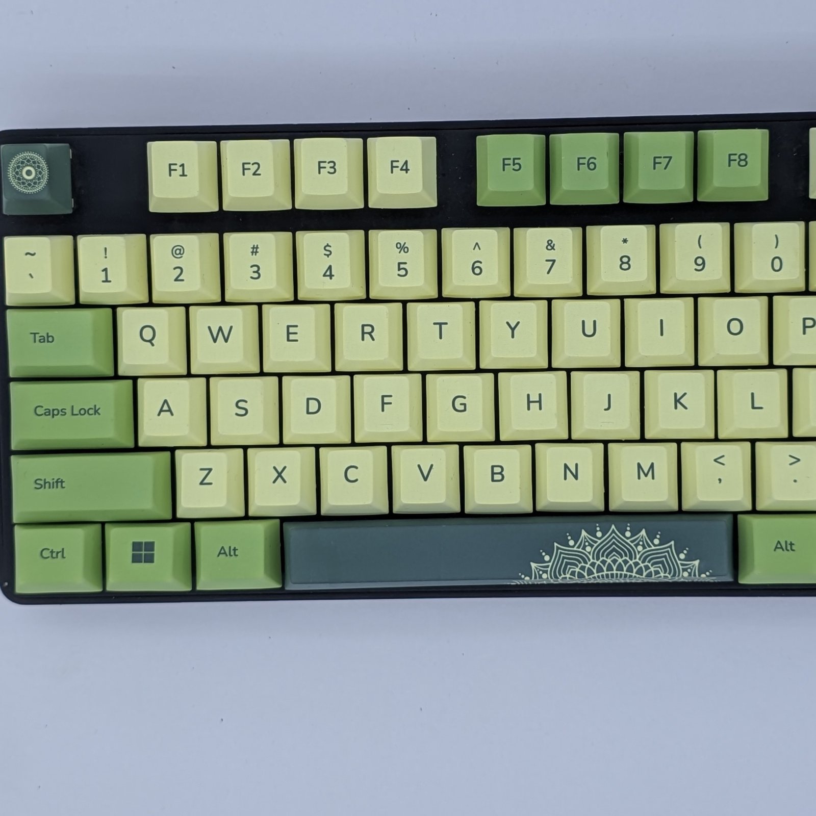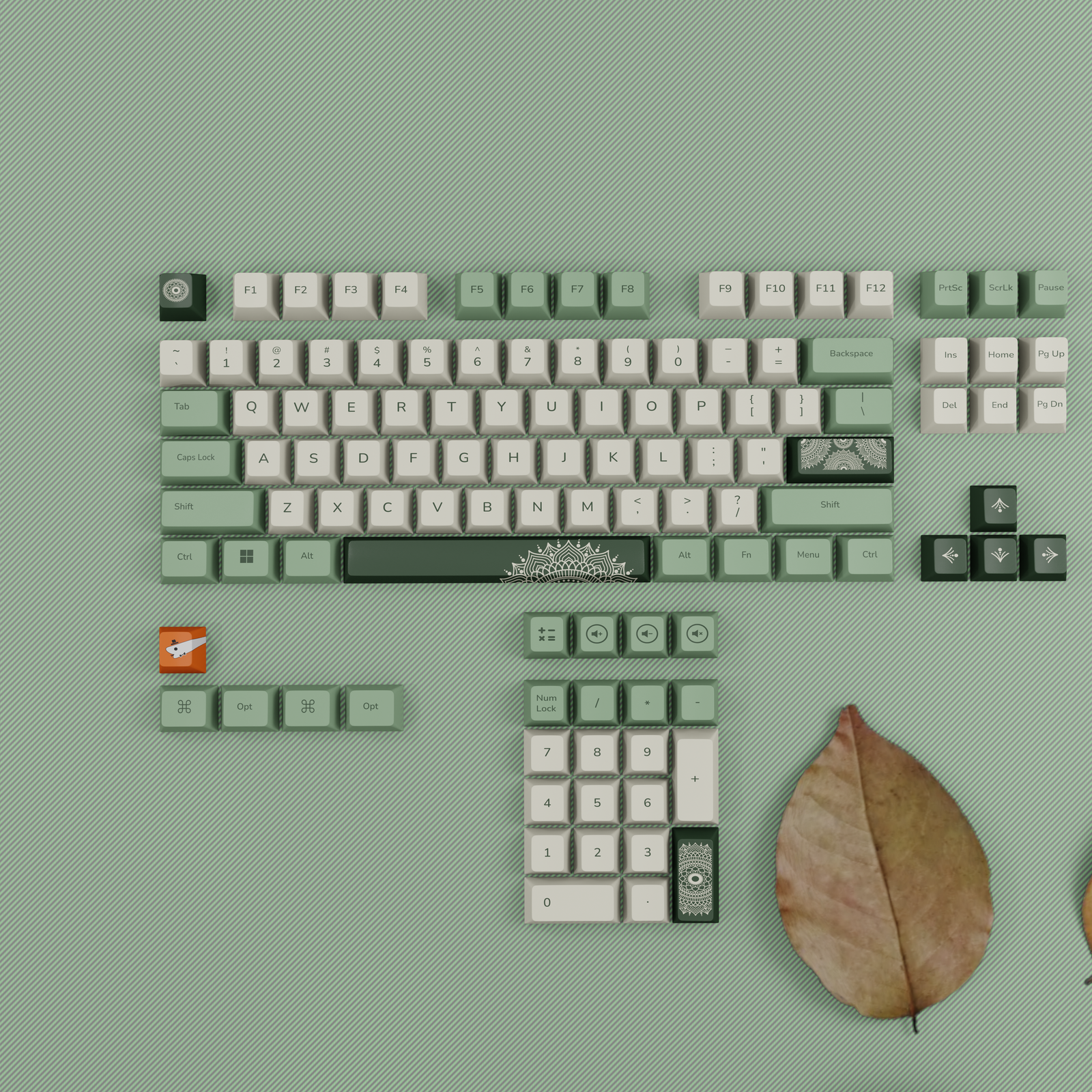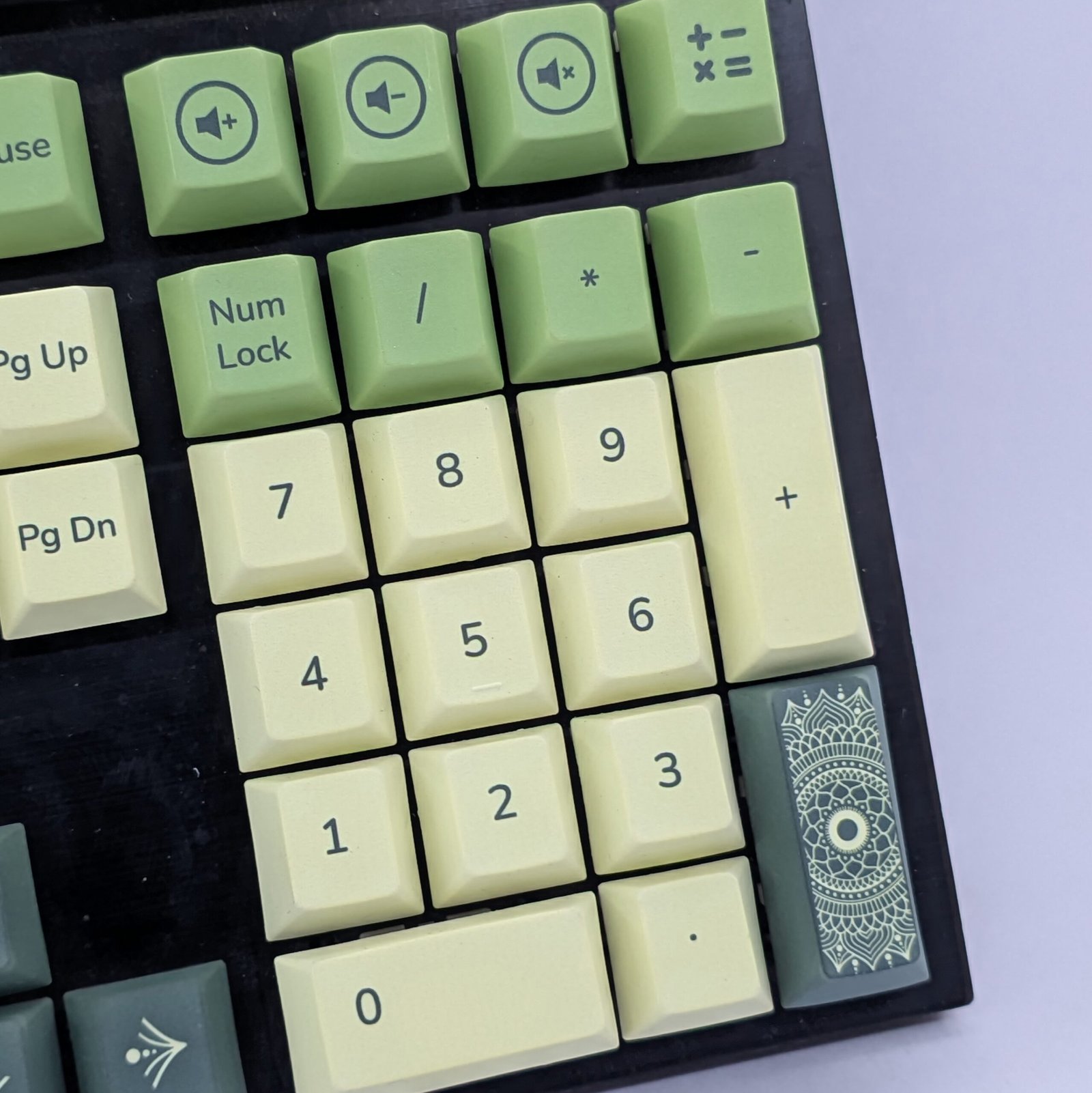 A refined green keycap set where timeless ethnic motifs meet modern minimalism.