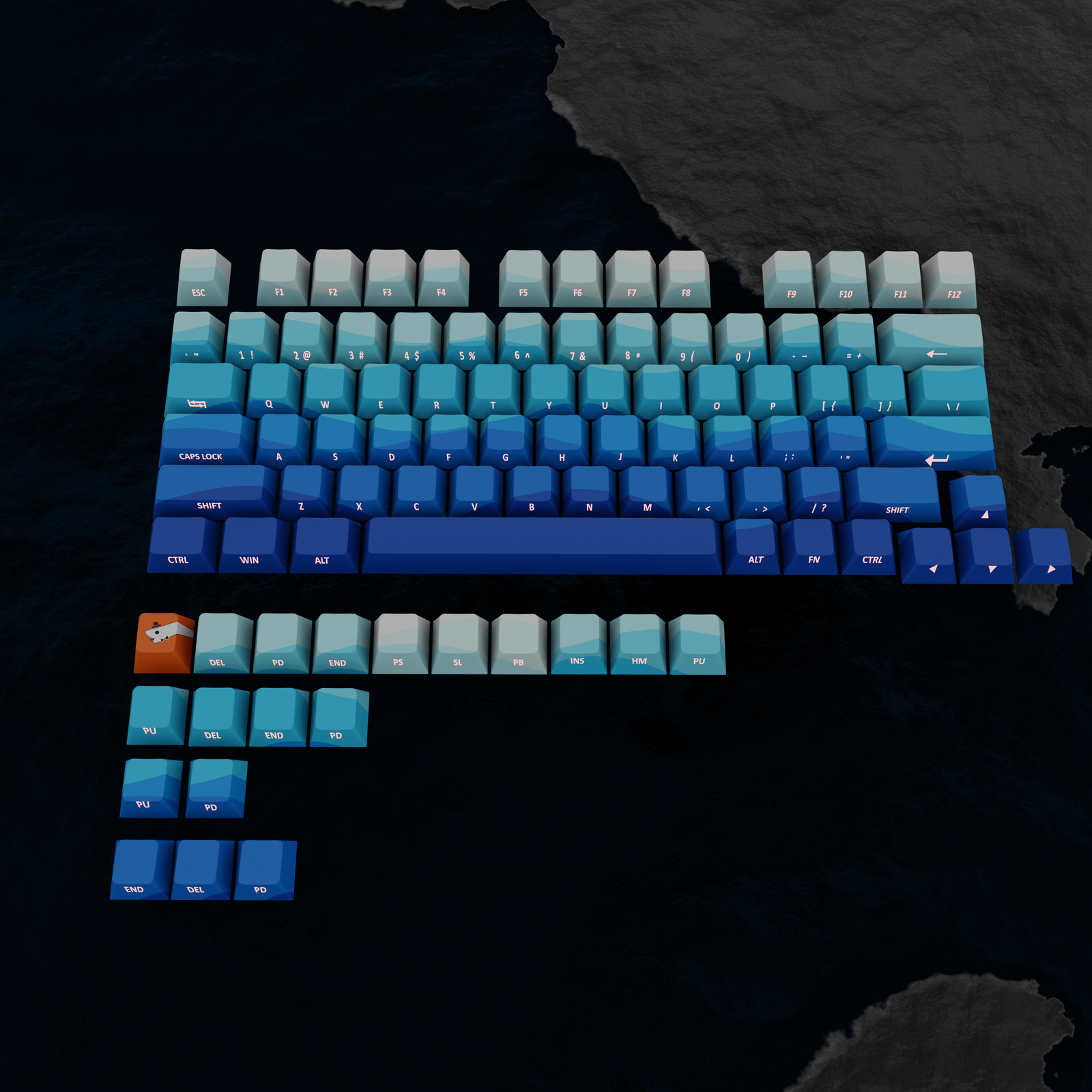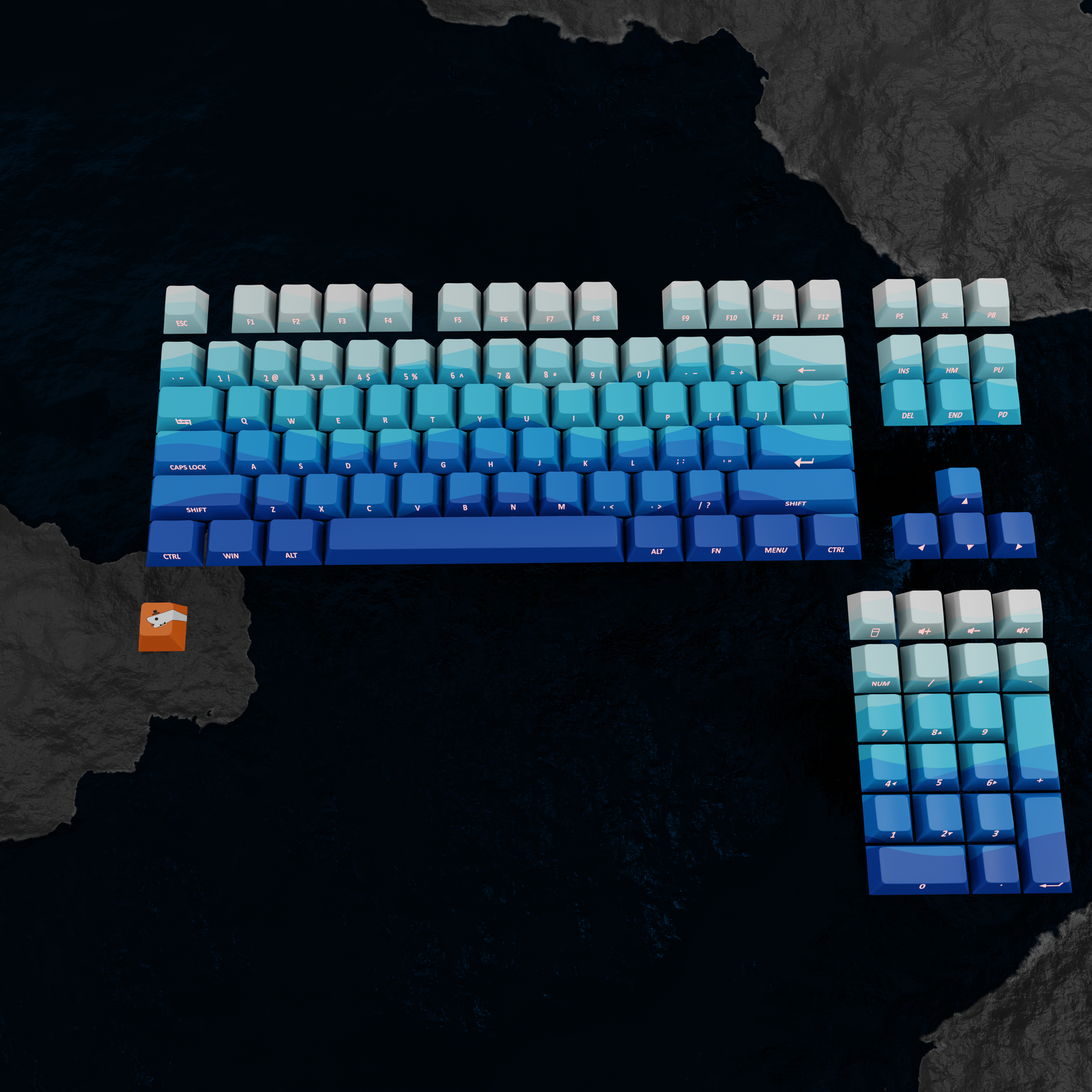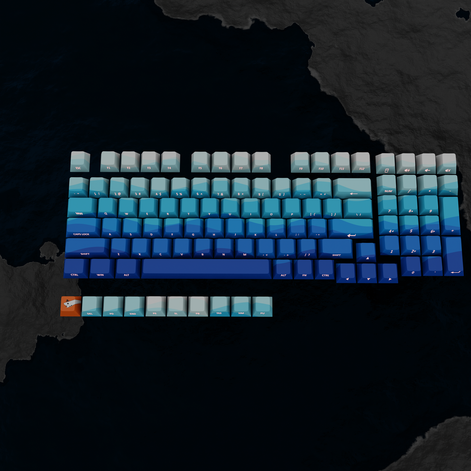 Ocean Waves | Front Legends Backlit | Cherry profile PBT | Custom Keycaps set