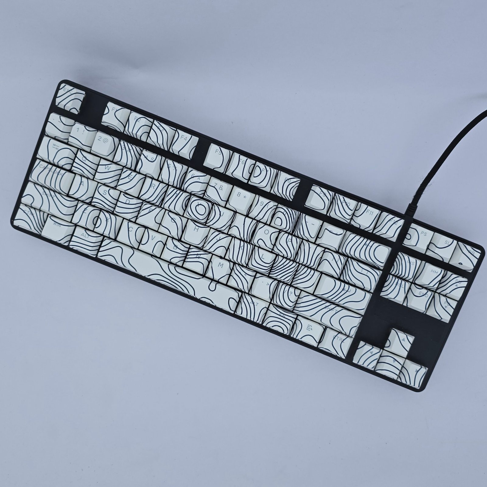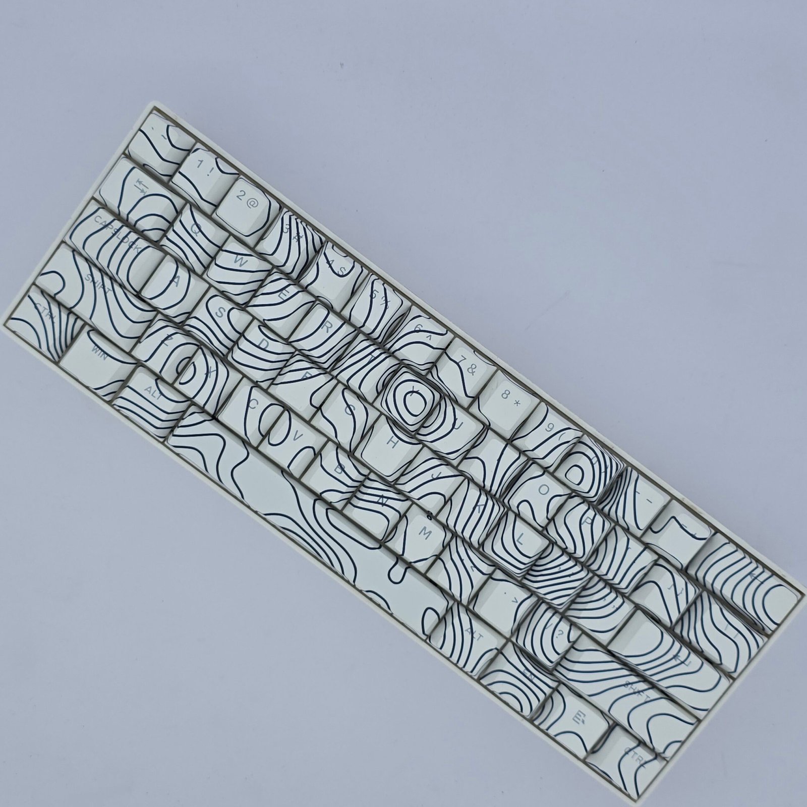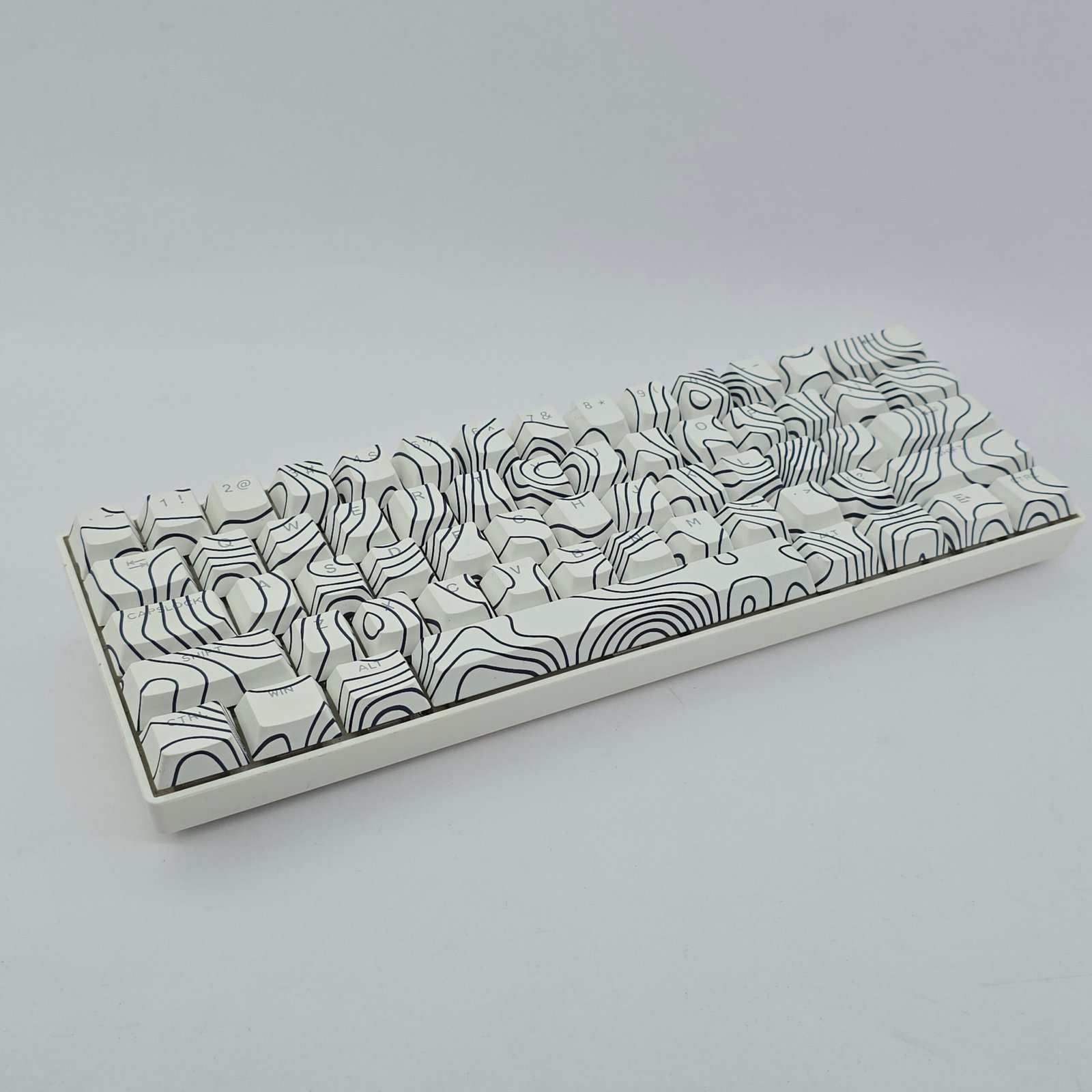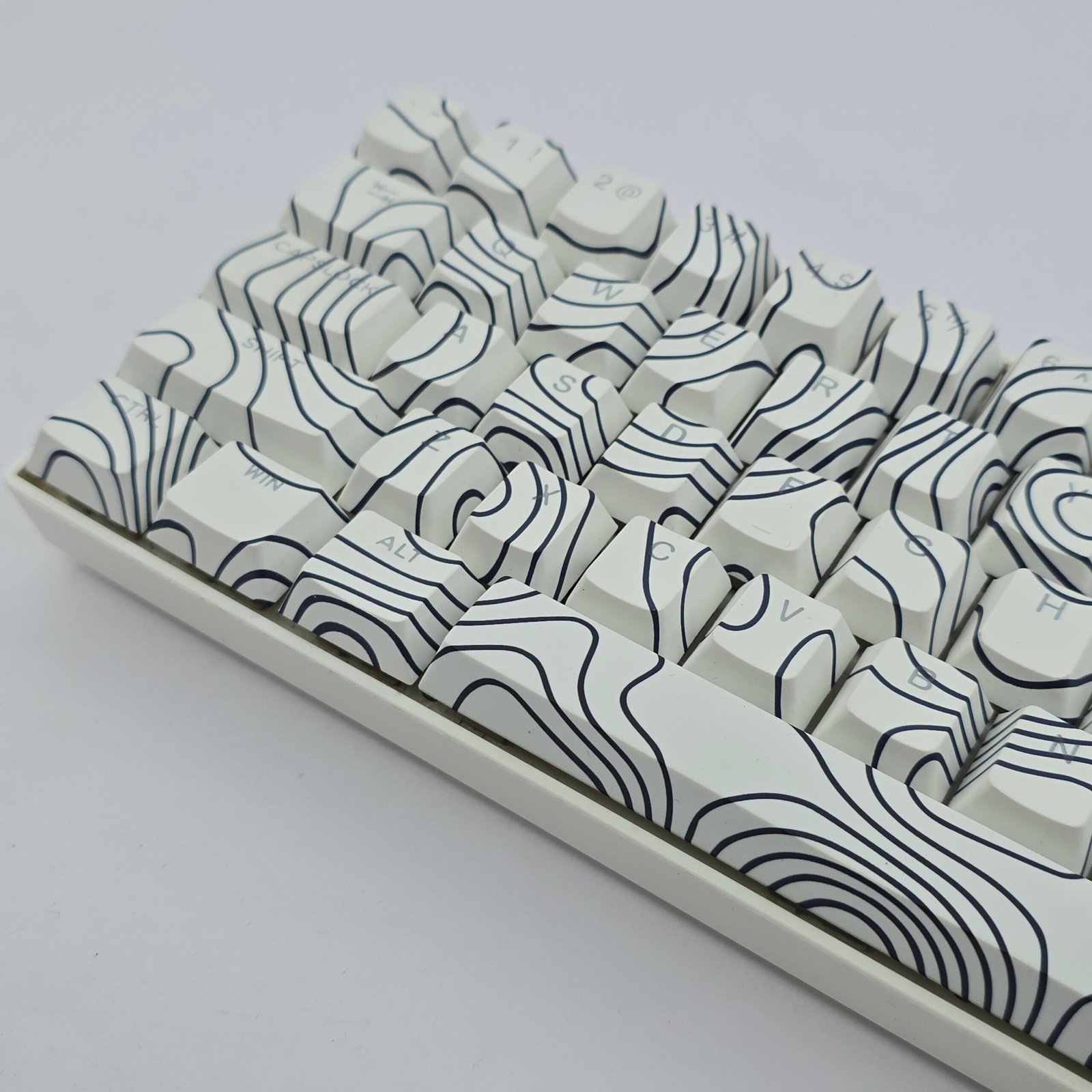Clean contour lines mapped across white for a calm, modern keyboard aesthetic.
