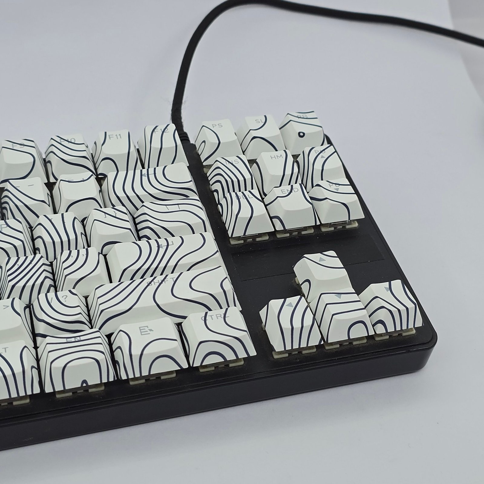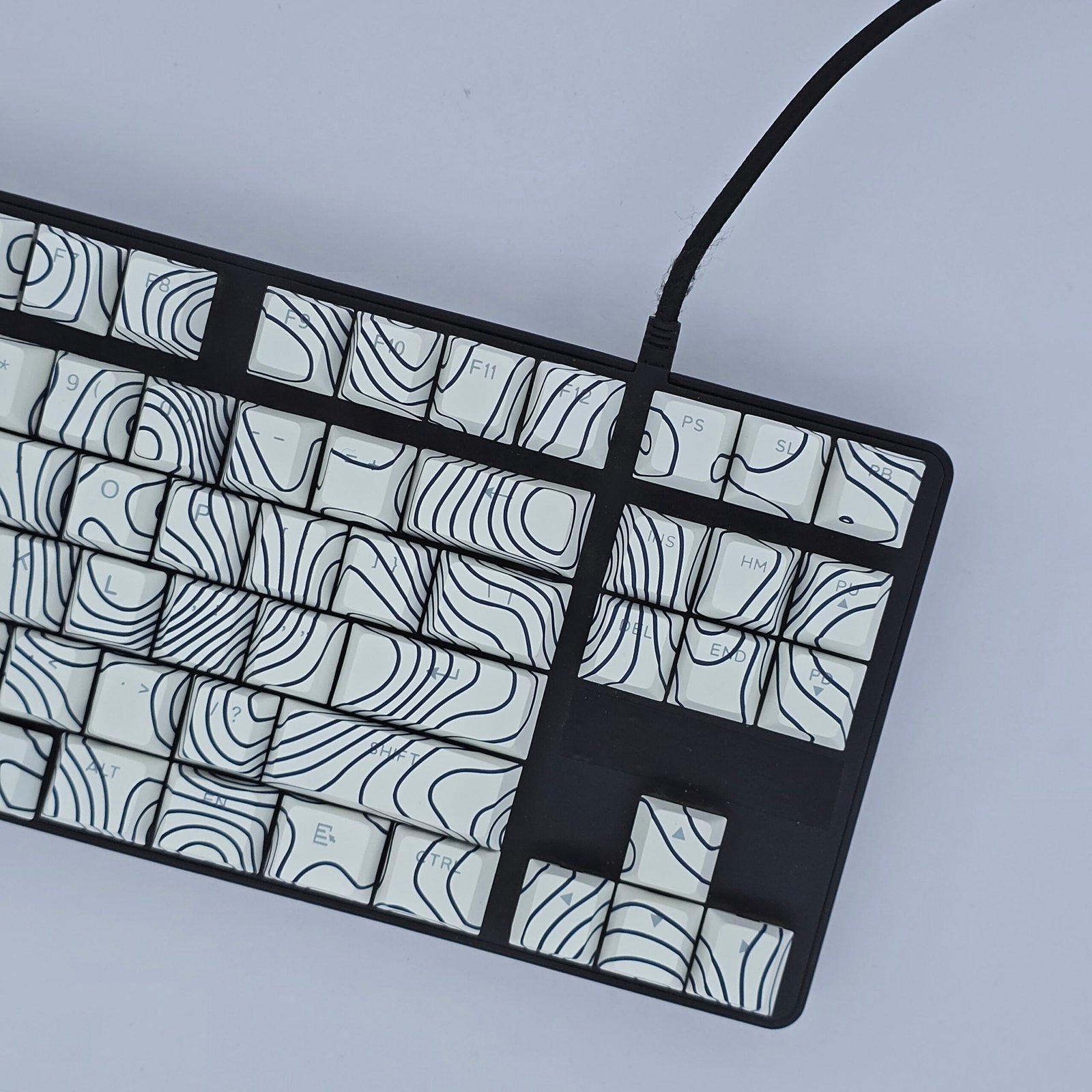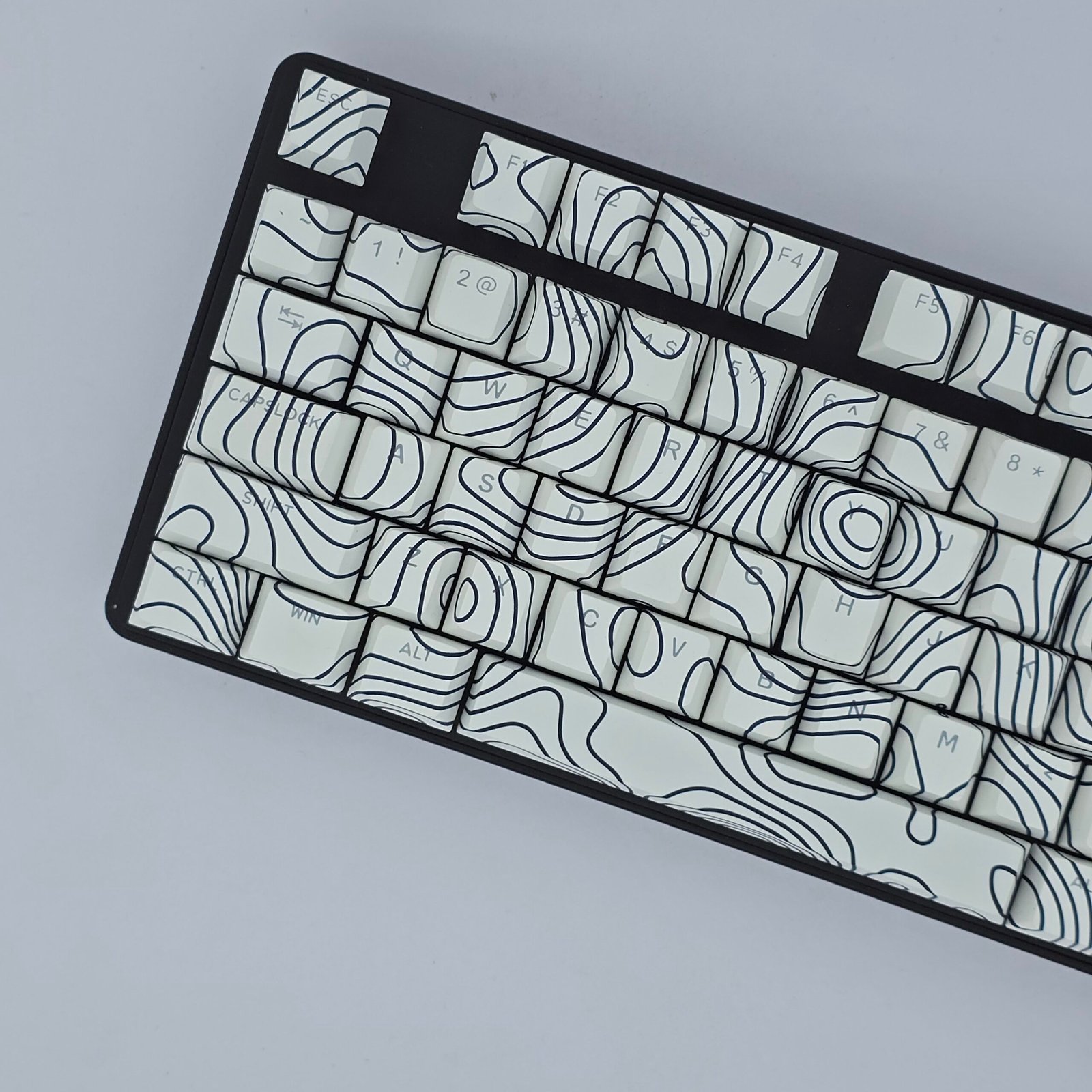 Clean contour lines mapped across white for a calm, modern keyboard aesthetic.
