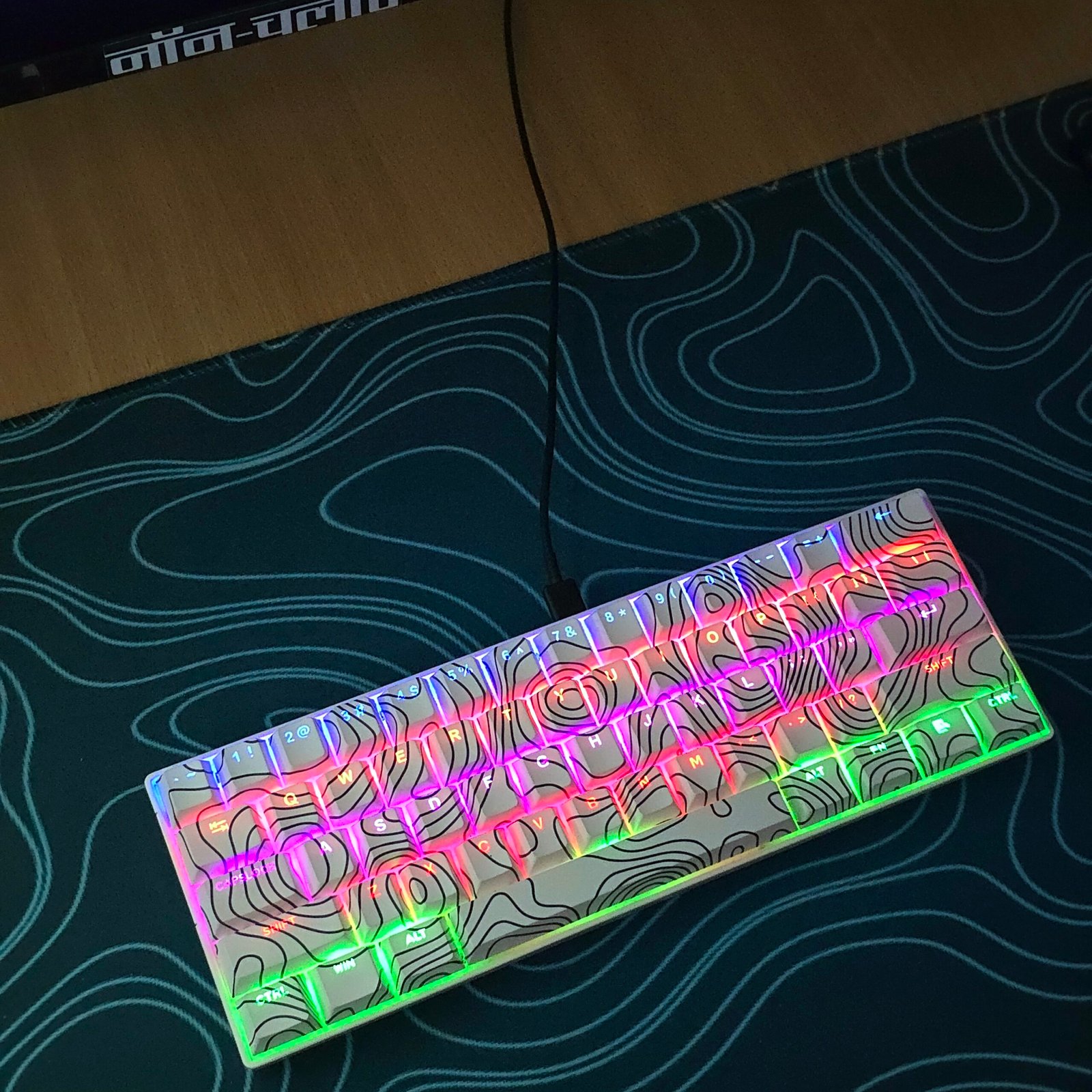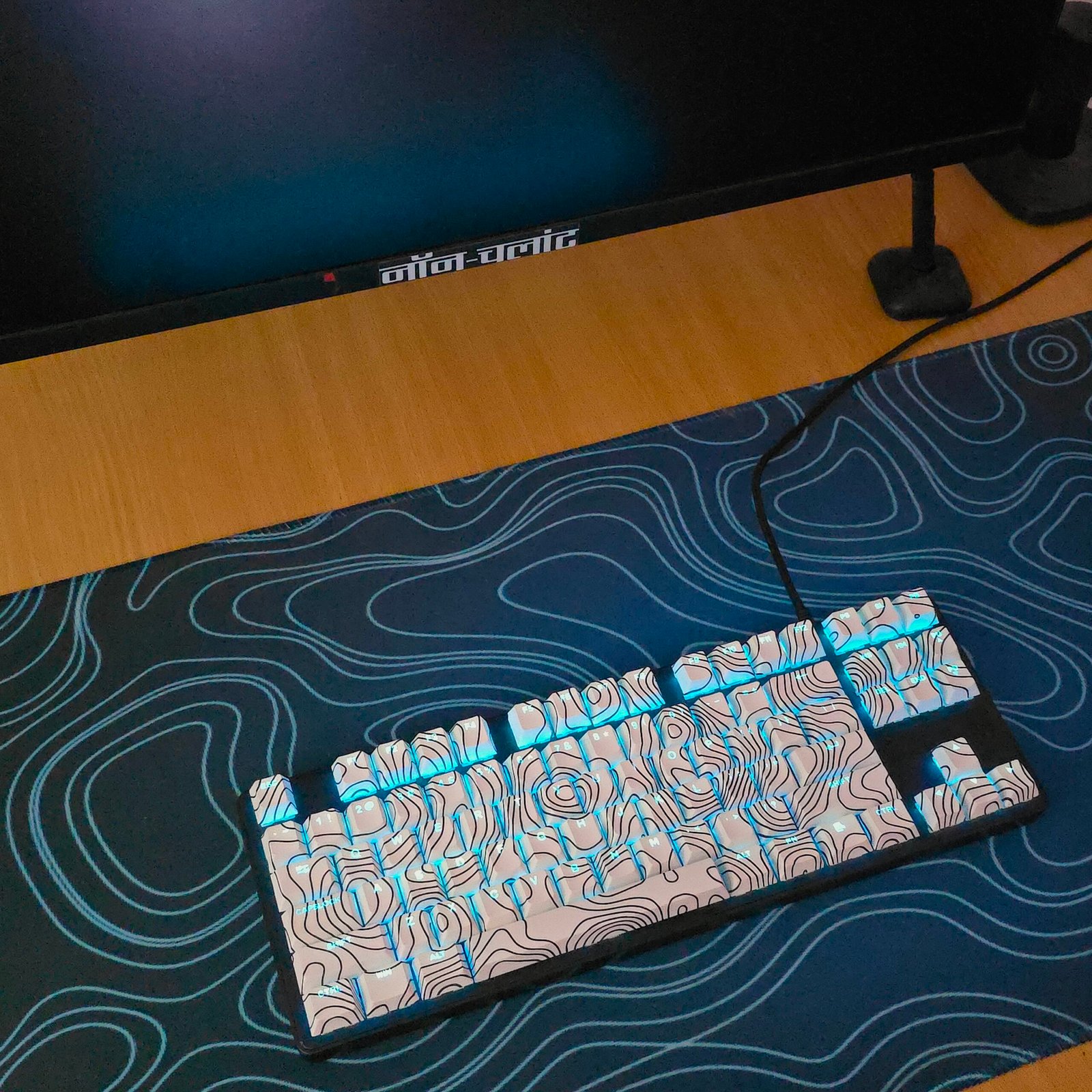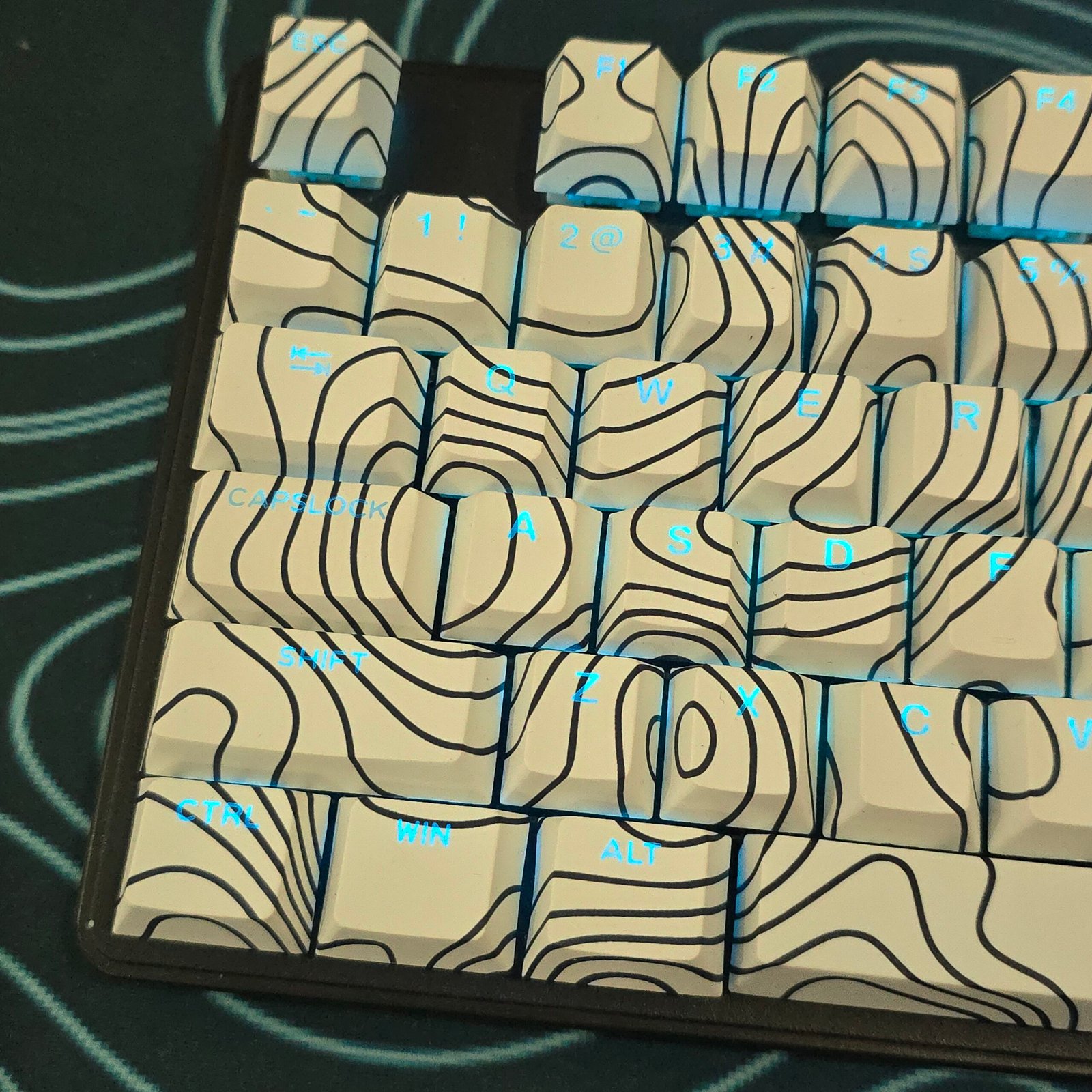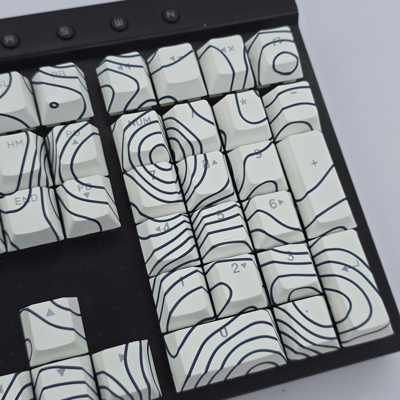 Clean contour lines mapped across white for a calm, modern keyboard aesthetic.